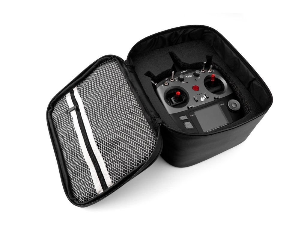 Ovládací prvky: Pro ovládání hlavních funkcí slouží přesné křížové ovladače s nastavitelnou silou neutralizačních pružin a možností přesunutí aretované osy pro plyn vlevo nebo vpravo. Díky tomu můžete libovolně volit provozní módy křížových ovladačů 1-4. Digitální trimy mají zvukovou signalizaci krokování a středové polohy. Jsou umístěny mírně excentricky a jsou snadno dosažitelné. Další kanály mohou ovládat dva otočné knoflíky na předním panelu a dva otočné ovladače s neutralizací na zadní straně vysílače; osm přepínačů (tři třípolohové a pět dvoupolohových) může sloužit jako kanálové přepínače nebo pro zapínání/vypínání programových funkcí. Pro snadné programování slouží dvojice tlačítek a programovací kolečko/tlačítko a barevný LCD displej s úhlopříčkou 2,8 palce a rozlišením 320×240 bodů. Vysílač využívá operační systém FreeRTOS.