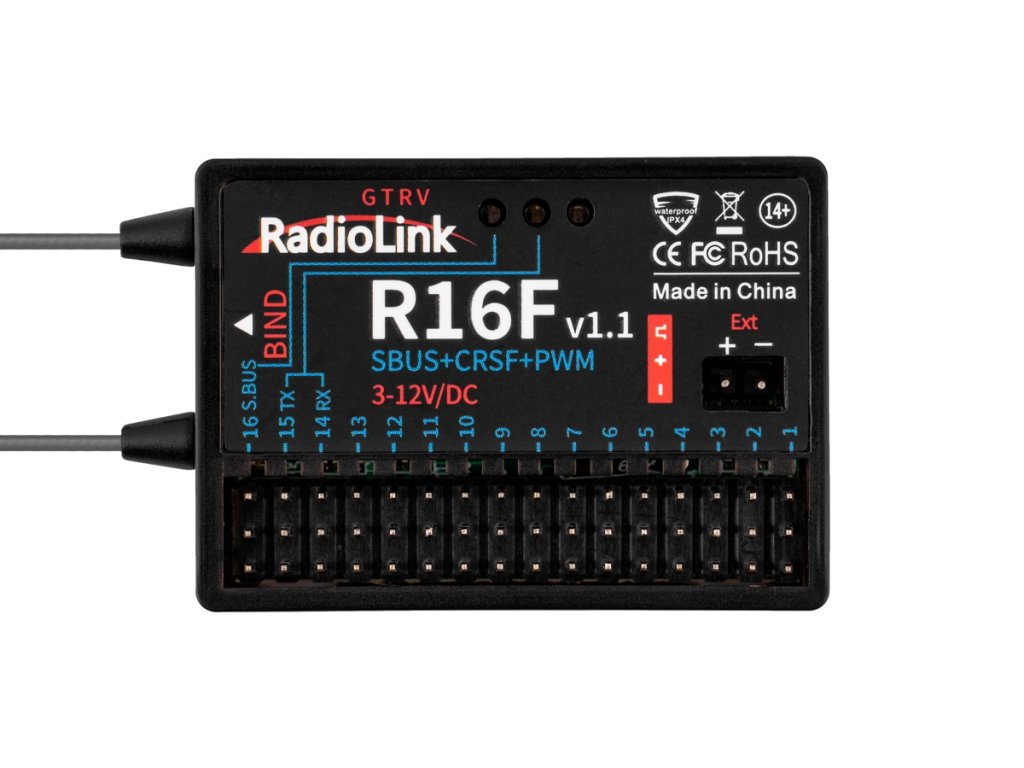 Kompatibilní přijímače: RadioLink R12F, R16F, R8FM, R8SM, R8XM, R8FGH, R8FG, R7FG, R6FG, R6F, R6FGM, R4F.