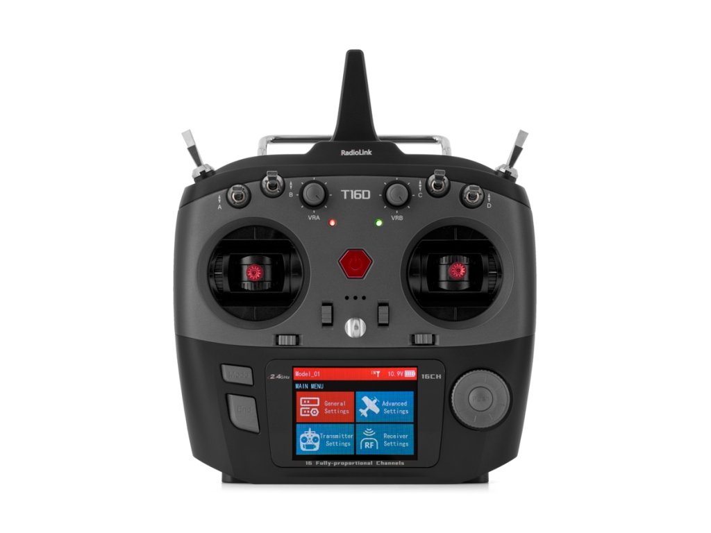 T16D je šestnáctikanálový počítačový vysílač pro rekreační modeláře umožňující nastavování základních funkcí, jako je velikost a smysl výchylek, disponuje i celou řadou mixů pro ovládání široké škály modelů – motorových akrobatických modelů, větroňů, multikoptér, aut a jiné pozemní techniky i lodí. Pracovat může s interním VF dílem s přenosovým systémem FHSS (stejný jako u T8FB/T8S nebo u pistolových vysílačů RadioLink R4GS/R6GS/R8X), ale umožňuje i připojení externích VF modulů ELRS nebo TBS Crossfire s dlouhým dosahem. Vyznačuje se praktickou skříňkou dokonale padnoucí do ruky s klasickým, léty prověřeným ergonomickým rozmístěním ovládacích prvků.