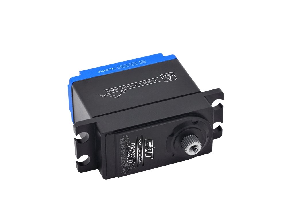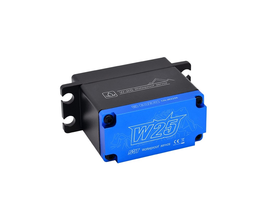 Generace WATERPROOF(vodotěsné) DC (stejnosměrný motor) servo W25 navrženo pro rekreační modeláře rychlostí až 0,14s a 25kg/cm tahu/točivého momentu. Servo využívá celohliníkové pouzdro pro dosažení optimálních teplot ale i tuhosti, zatímco stejnosměrný motor a měď/hliníkové převody zajišťují vysoký výkon a trvanlivost. Servo je vybaveno JR konektorem o délce 360mm v černé barvě.