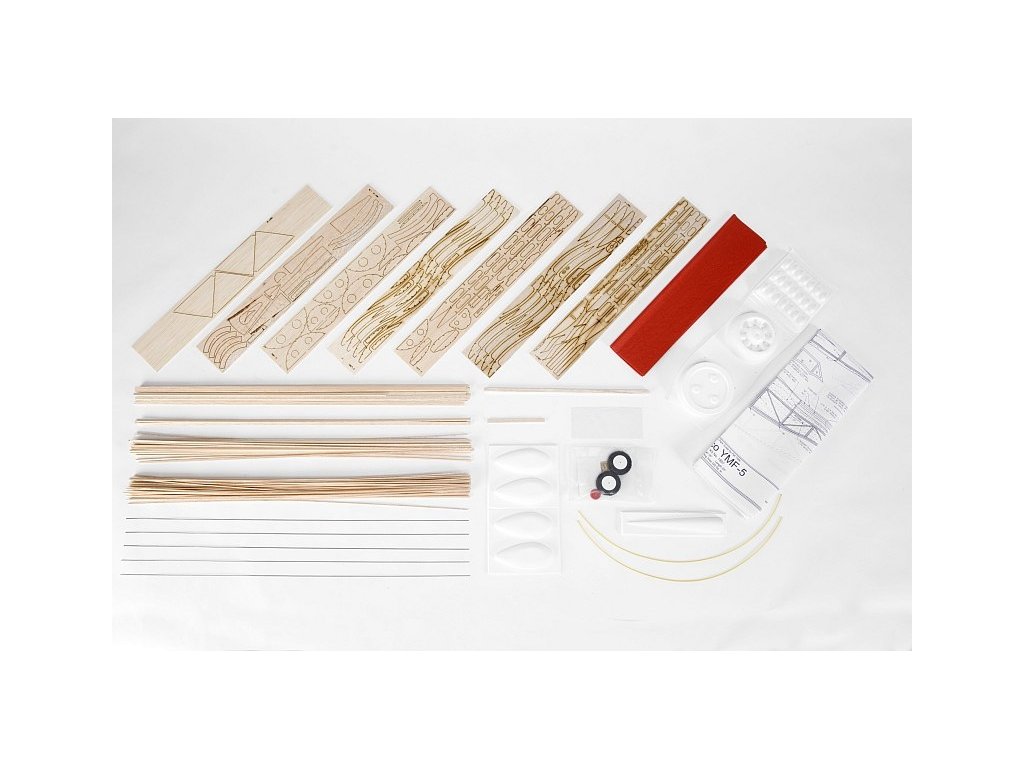 Stavebnice obsahuje: balsové laserem vyřezávané díly, balsové nosníky, vakuově lisované díly (kryt motoru...), čirou plastovou fólii na větrný štítek, ocelovou strunu na podvozek a další drobné díly, lehká pěnová kola, barevný potahový papír, aršík samolepek, stavební plán.