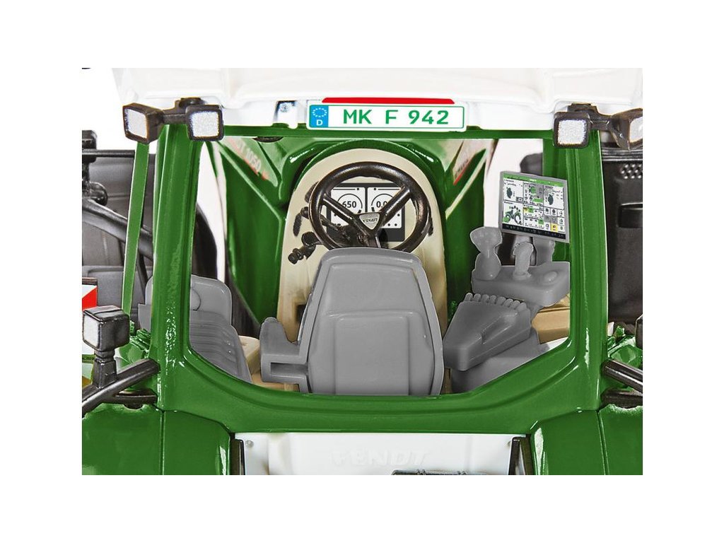 Kovový model traktoru Fendt 942 Vario v měřítku 1:32, potěší každého příznivce zemědělské techniky. Hlavní části jako je kapota, podvozek apod. jsou vyrobeny z kovu, plastové části jsou použity pro detaily. Prvky jako jsou nápisy, registrační značka a přístrojová deska jsou zpracovány pomocí potisku. Model obsahuje velké množství detailů a nechybí funkční části. Je vhodný na hraní pro děti, i ke sběratelským účelům.