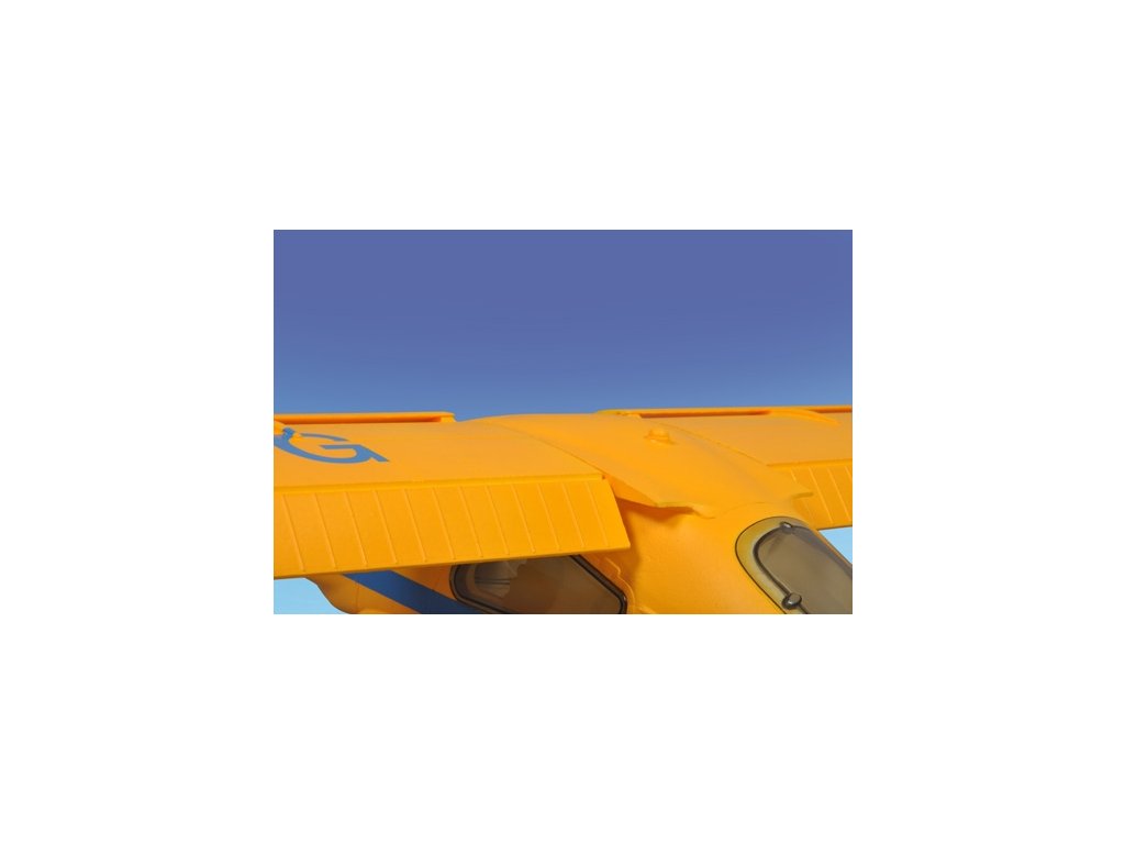 Křídlo rovněž z pěnového EPO je dvoudílné, spojované trubkovou uhlíkovou spojkou; poloviny křídla jsou zajištěny 2 šrouby. Křidélka a vztlakové klapky jsou ovládány dvěma páry serv uložených v křídle s krátkými přímými drátovými táhly. Před připojením táhel doporučujeme kormidla "rozpohybovat" opakovaným opatrným vychylováním nahoru a dolů resp. vlevo a vpravo.