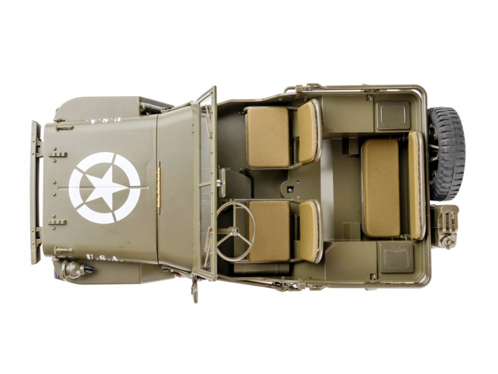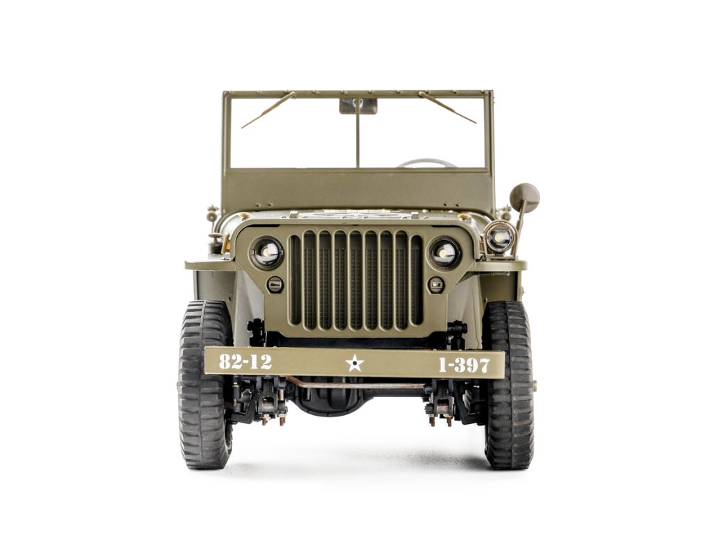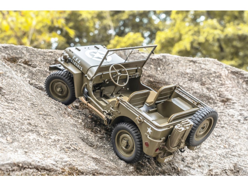 Maketový Jeep 1:12 1941 Willys MB má skutečně co nabídnout, např. realisticky vypadající plátěná sedadla, sklápěcí zadní lavici s otvíratelnými odkladovými prostory, či pneumatiky s reálným vzorkem běhounu. Podvozek Willys MB se vyznačuje pevným žebřinovým rámem, který věrně napodobuje jeho plnohodnotný protějšek, vícelistovými pružinami s tlumiči a diferenciály, díky čemuž se tento model skvěle podobá legendárnímu historickému Willysu. Willys MB je vybaven fantastickým systémem LED (čtyři směrová světla, dva světlomety a zatemňovací lampa), který pomáhá prozkoumat temnotu noci. Kromě úpravy měřítka a detailů jeho 2,4GHz vysílač ANT poskytuje modelářům od začátečníků po experty možnost užít si vzrušující cestu s dvěma možnostmi ovládání (režim crawl a režim pro začátečníky), stejně jako upozorňuje na slabou baterii, přetížení motoru a další.