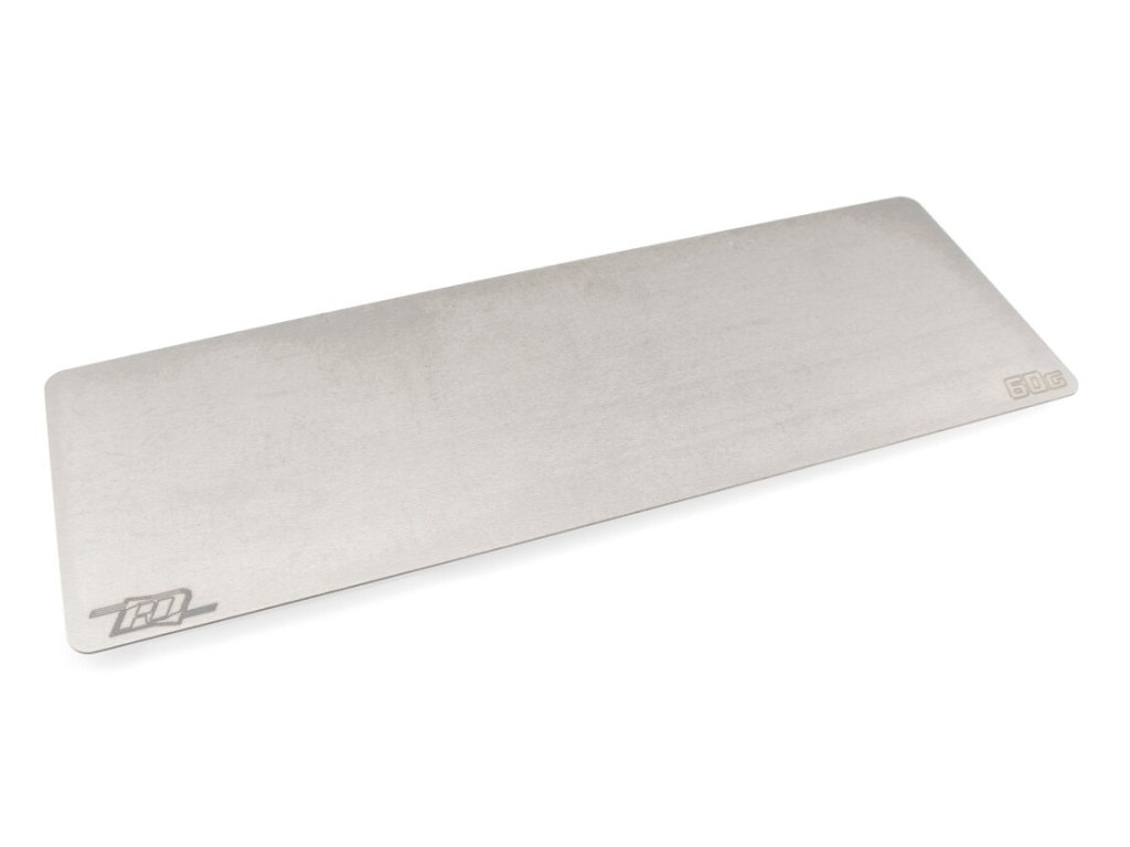 Revolution Design Wolframové závaží pod akumulátor je určeno pro dlouhé 2S akumulátory a dodává koncentrovaných 60 g přesně tam, kde je závodníci chtějí mít - pod LiPo a co nejníže. Používá stejnou 0,5 mm wolframovou architekturu jako jeho krátký sourozenec, takže dosahuje cílové hmotnosti při zhruba poloviční tloušťce oproti srovnatelné mosazné destičce. Díky nižšímu profilu je akumulátor uložen zhruba o 0,7 mm hlouběji, čímž klesá těžiště vozu a umožňuje tak ostřejší průjezd zatáčkou a stabilnější dopady na tratích s vysokou přilnavostí.