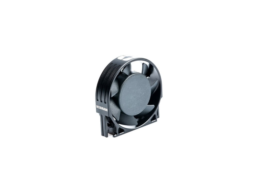 Hliníkový ventilátor motoru NOSRAM 40mm V2 High Rev. je vyroben z vysoce kvalitního, černě eloxovaného hliníku, zdobeného několika rytinami.