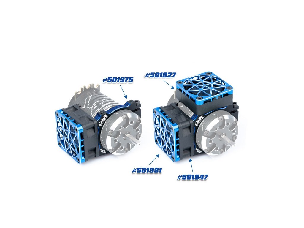 Systém chlazení motoru 1/8E se skládá z našeho hliníkového držáku ventilátoru WorksTeam (L501975), ventilátorů motoru WorksTeam SuperHighRev. (L501847 / L501827) a odpovídající hliníkové bezpečnostní síťky WorksTeam (L501981), která udržuje motor chladný za jakýchkoli podmínek.