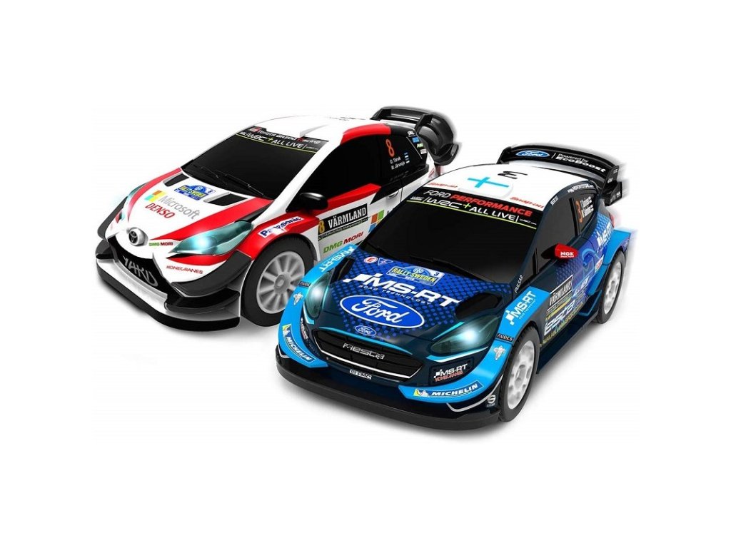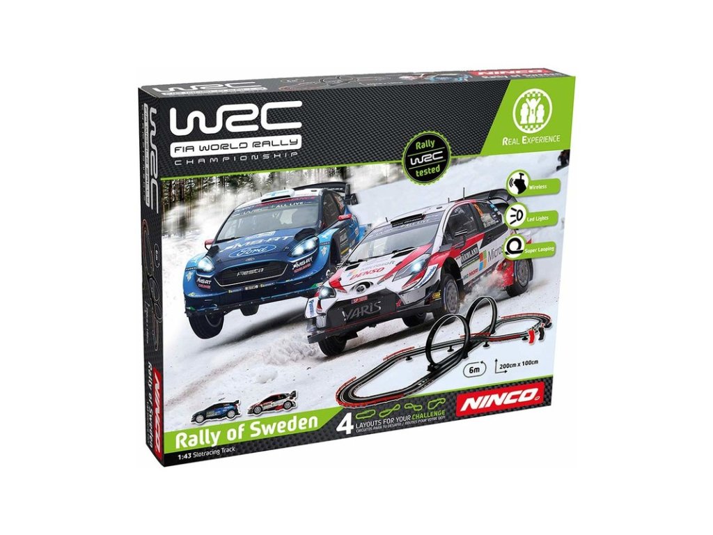 Autodráha WRC Rally Sweden v měřítku 1:43, s loopingy a mostem. Délka tratě 6m, dvě auta rally, 4 různé konfigurace trati. Bezdrátové dálkové ovladače jsou přizpůsobeny dětské ergonomii a mají funkci TURBO. Auta Toyota Yaris WRC a Ford Fiesta WRC. Rozměry 200x100 cm.