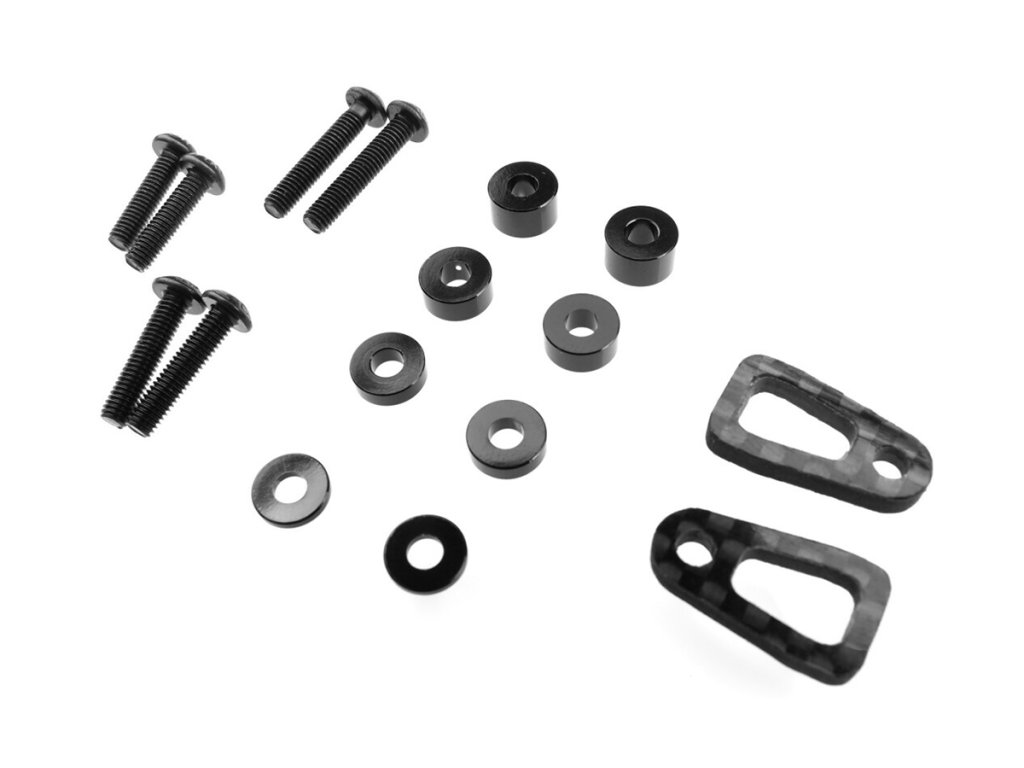 Revolution Design XB4 25 Ultra karbonový držák akumulátoru (RDRP0713) nahrazuje sériové plastové držáky akumulátoru modelu Xray XB4 2025 elegantními a lehkými karbonovými díly. Toto vylepšení, navržené pro estetiku i funkci, umožňuje nastavit výšku akumulátoru pomocí přiložených černých hliníkových podložek. Součástí balení jsou také šrouby různých délek pro zajištění přesného uchycení. A co je nejlepší, výměnu akumulátoru lze provádět bez použití jakéhokoli nářadí.