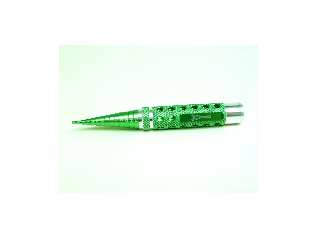 Tento nástroj je určen ke kontrole velikosti vnitřního průměru metrických ložisek a k ověření správného fungování ložiska. Jakmile je ložisko umístěno na nástroj, můžete jej roztočit, abyste zajistili plynulé otáčení. Lze jej také použít k čištění ložiska, když je nainstalováno, a také k jeho mazání před opětovným vložením do vozidla. Nástroj Xceed je rozdělen do 14 kroků s vyrytou velikostí na každém, 2 mm až 15 mm.