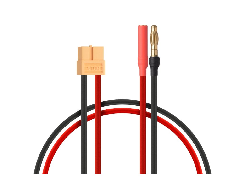 Nabíjecí kabel (reduce) pro nabíječky s výstupním konektorem XT60 k nabíjení akumulátorů s konektorem Gold 4mm. Délka 25cm, 14AWG.