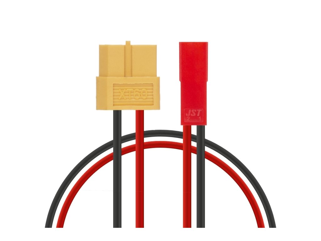 Nabíjecí kabel (reduce) pro nabíječky s výstupním konektorem XT60 k nabíjení akumulátorů s konektorem JST BEC. Délka 25cm. 20AWG