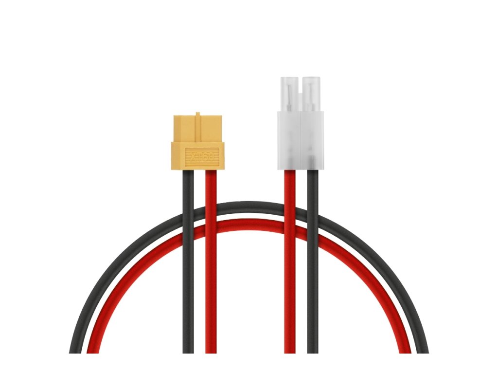 Nabíjecí kabel (reduce) pro nabíječky s výstupním konektorem XT60 k nabíjení akumulátorů s konektorem Tamiya Gold. Délka 25cm, 14AWG.
