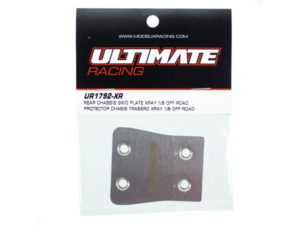 Zadní ochranná deska podvozku Ultimate Racing pro Xray 1/8 Off Road. Tato zadní deska (skid plate), určená pro platformy XB8 23 a 24, nabízí zvýšenou ochranu podvozku před opotřebením. Je vyrobena z 0,5mm nerezové oceli a je jedním z nejjednodušších způsobů ochrany vašeho vozidla. Balení obsahuje jednu desku stříbrné barvy s laserovým gravírováním Ultimate Skid Plate.