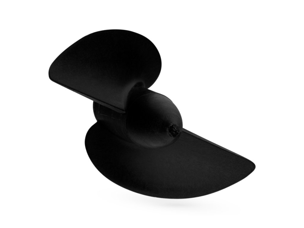 Dvoulistý lodní šroub Hydro-K pro montáž v poloponořeném stavu, stoupání 1,4x průměr, plast plněný uhlíkem, závit M4.Doplňkové parametry