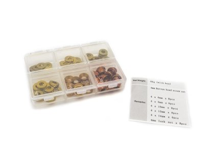 Hliníkové podložky 4mm4x6mm, 8 ks.4x8mm, 8 ks.4x10mm, 8ks.4x12mm, 8ks.4x14mm konické, 6ks.M4 samojistná matka 8ks.