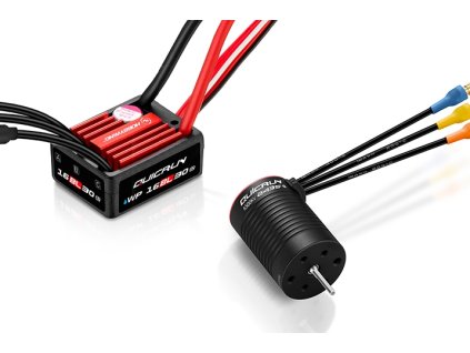 Combo střídavého regulátoru QUICRUN 16BL30 a bezsenzorového motoru QUICRUN 2435SL G3 4500KV. Ideální pro silniční a terénní auta 1:16/1:18 s napájením 2-3S LiPo.