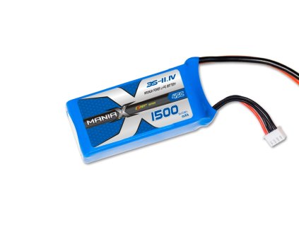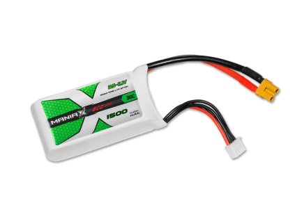 LiPo akumulátorová sada ManiaX se zatížitelností 30/60C, nabíjení 1-3C, max. 5C. Tříčlánek 3S 11,1V 1500 mAh, rozměry: 75x34x24mm, hmotnost: 130g, XT60 + servisní konektor JST-XH.