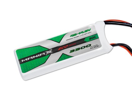 LiPo akumulátorová sada ManiaX se zatížitelností 30/60C, nabíjení 1-3C, max. 5C. Čtyřčlánek 4S 14,8V 3300 mAh, rozměry: 135x44x27mm, hmotnost: 330g, XT60 + servisní konektor...