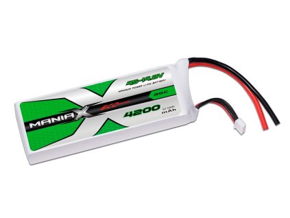 LiPo akumulátorová sada ManiaX se zatížitelností 35/70C, nabíjení 1-3C, max. 5C. Čtyřčlánek 4S 14,8V 4200 mAh, rozměry: 136x44x33mm, hmotnost: 412g, XT60 + servisní konektor...