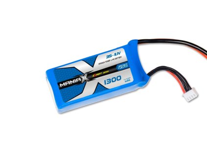 LiPo akumulátorová sada ManiaX se zatížitelností 30/60C, nabíjení 1-3C, max. 5C. Tříčlánek 3S 11,1V 1300 mAh, rozměry: 75x34x22mm, hmotnost: 104g, XT30 + servisní konektor JST-XH.
