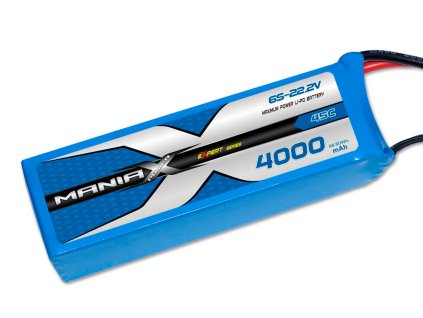 LiPo akumulátorová sada ManiaX se zatížitelností 45/90C, nabíjení 1-3C, max. 5C. Šestičlánek 6S 22,2V 4000 mAh, rozměry: 158x48x43, hmotnost: 670g, XT90 + servisní konektor JST-XH.