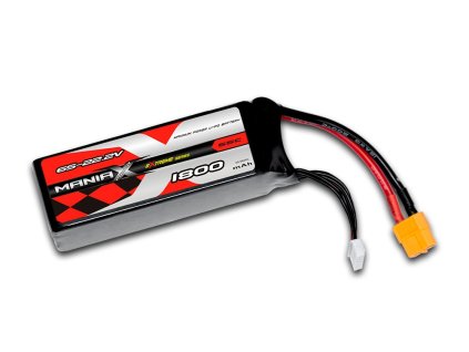 LiPo akumulátorová sada ManiaX se zatížitelností 45/90C, nabíjení 1-3C, max. 5C. Šestičlánek 6S 22,2V 1800 mAh, rozměry: 104x34x42mm, hmotnost: 310g, XT60 + servisní konektor...