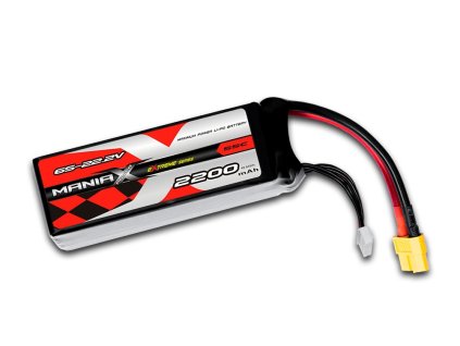 LiPo akumulátorová sada ManiaX se zatížitelností 55/110C, nabíjení 1-3C, max. 5C. Šestičlánek 6S 22,2V 2200 mAh, rozměry: 110x34x52mm, hmotnost: 372g, XT60 + servisní konektor...