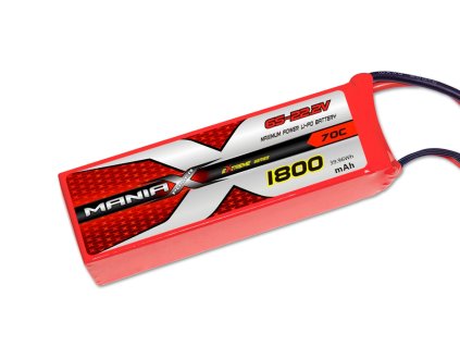 LiPo akumulátorová sada ManiaX se zatížitelností 70/140C, nabíjení 1-3C, max. 5C. Šestičlánek 6S 22,2V 1800 mAh, rozměry: 108x34x45, hmotnost: 325g, XT60 + servisní konektor...