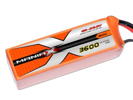 LiPo akumulátorová sada ManiaX se zatížitelností 80/160C, nabíjení 1-3C, max. 5C. Šestičlánek 6S 22,2V 3600 mAh, rozměry: 136x44x45, hmotnost: 585g, XT60 + servisní konektor...