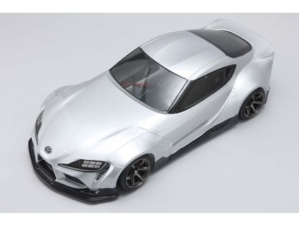 Čirá karoserie včetně lexanového zadního křídla s hliníkovými držáky, základních samolepek a masek oken.