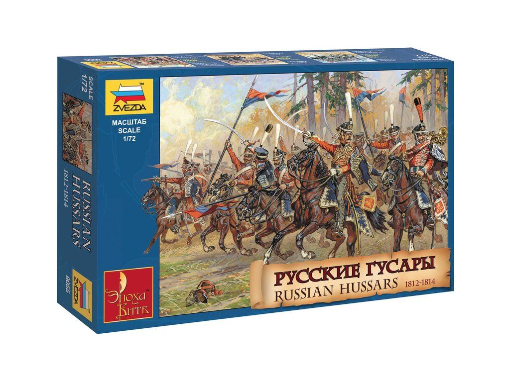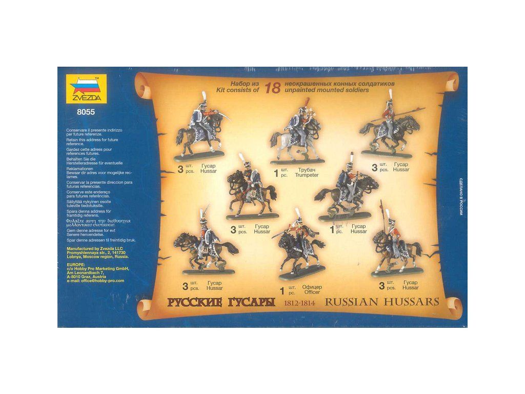 Plastikový model Zvezda 8055 - figurky ruských husarů 1812-1814 v měřítku 1:72. Stavebnice obsahuje 18 nenabarvených figurek, výška figurky 35 mm. Ideální pro doplnění plastikových modelů či diorámat.