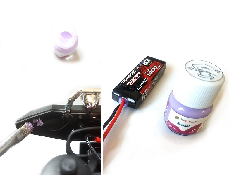 Pro lepení doporučujeme univerzální disperzní lepidlo a Robitronic vteřinové lepidlo střední 20ml. K barvení doporučujeme akrylové emailové barvy. Barvy nanášejte kvalitními štětci (ploché štětce na povrchy, kulaté štětce pro detaily).